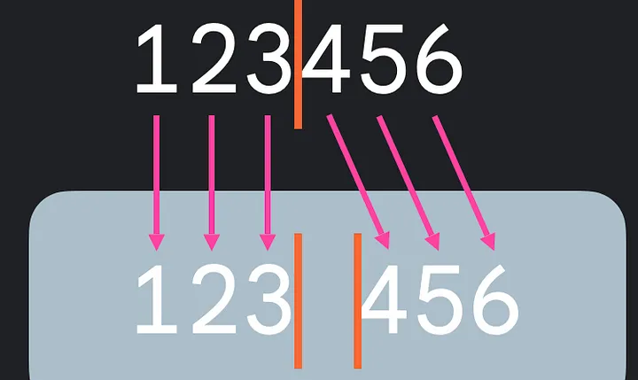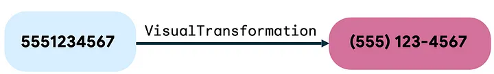 전화번호 문자열의 포매팅을 예로 들 수 있습니다. 일반적으로 전화번호를 입력할 때 공백, 대시 그리고 괄호를 추가하여 전화번호를 수정해야 합니다. VisualTransformation API를 사용하여 이를 구현하려면 초기 문자와 변환된 문자의 위치 간의 매핑을 지정해야 합니다.