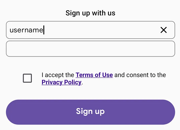 그런 다음 각각의 새 텍스트 값에 대해 비동기 요청을 수행하고 userNameHasError 값을 설정합니다. 이런 동작은 viewModel 안에서 일어납니다. 컴포즈에서 타이핑 이벤트를 감지하기 위하여 LaunchedEffect를 정의합니다. 그리고 뷰를 변경하기 위하여 userNameHasError 상태를 관찰합니다.